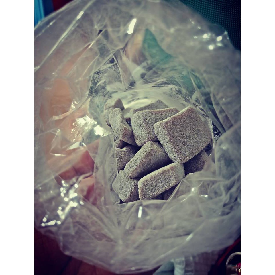 Dibuat dari tepung beras, lada hitam, halia dan gula.